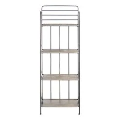 61in. Brown Decorative Arch Metal Rack With Folding Wood Top Shelves