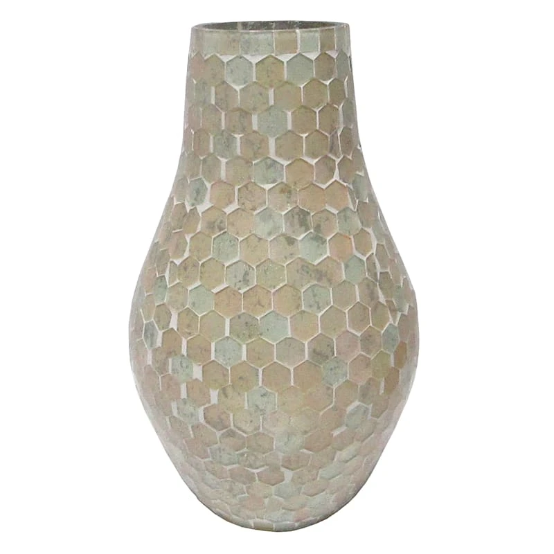 Laila Ali brings the mindset of a world-champion athlete and passion for healthy living to create a modern lifestyle collection with serious style only found At Home. Round out your indoor and outdoor decor’s visual appeal with this cool 9.5in. pink mosaic vase, crafted of mosaic glass and showcasing a beautiful pink honeycomb pattern. This piece’s architectural details add a pop to your look. Set this piece inside or out to enhance any space in your home.